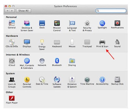 Click the Apple icon at the top left of the screen and click System Preferences.Click Print and Scan.
